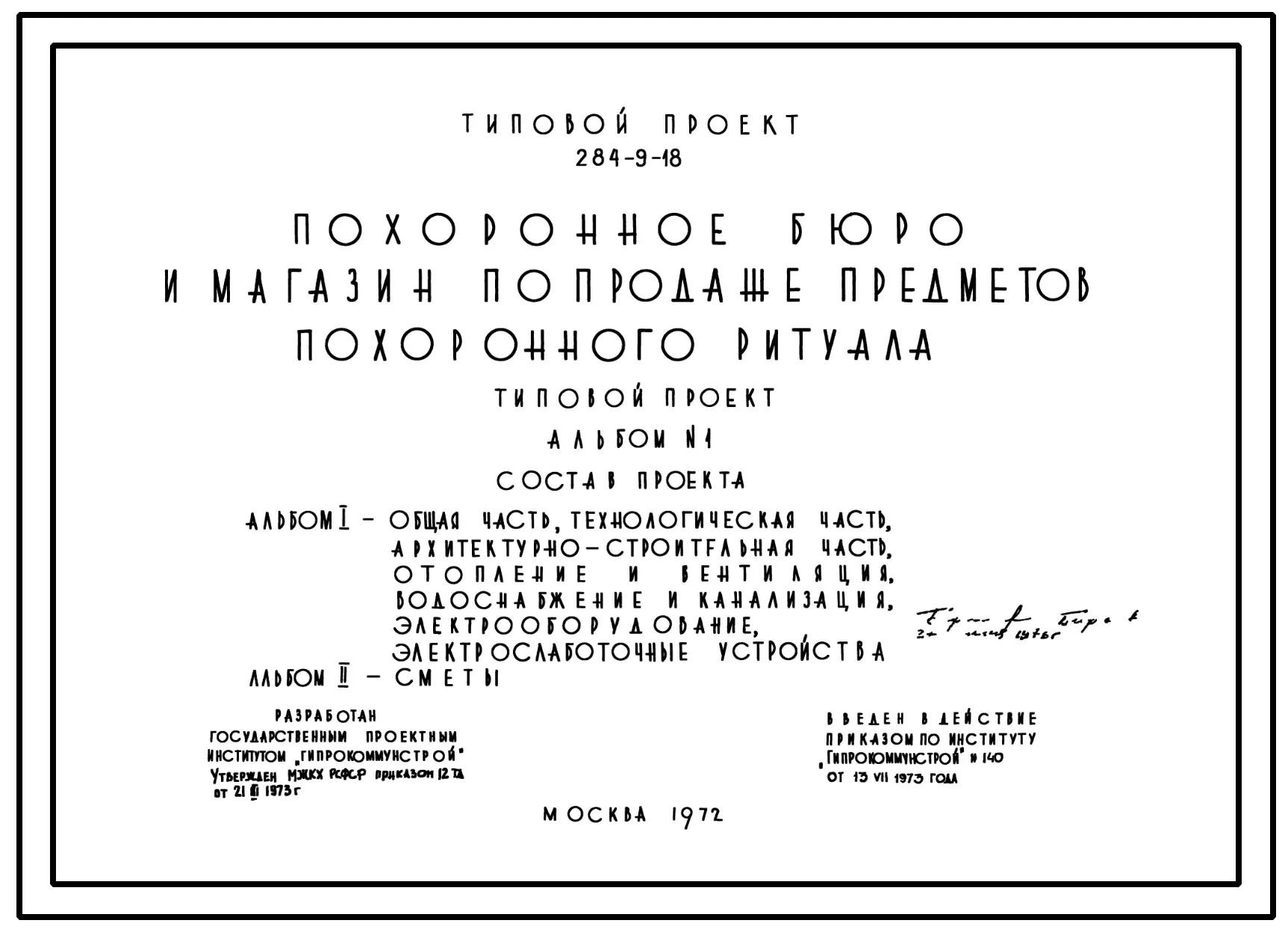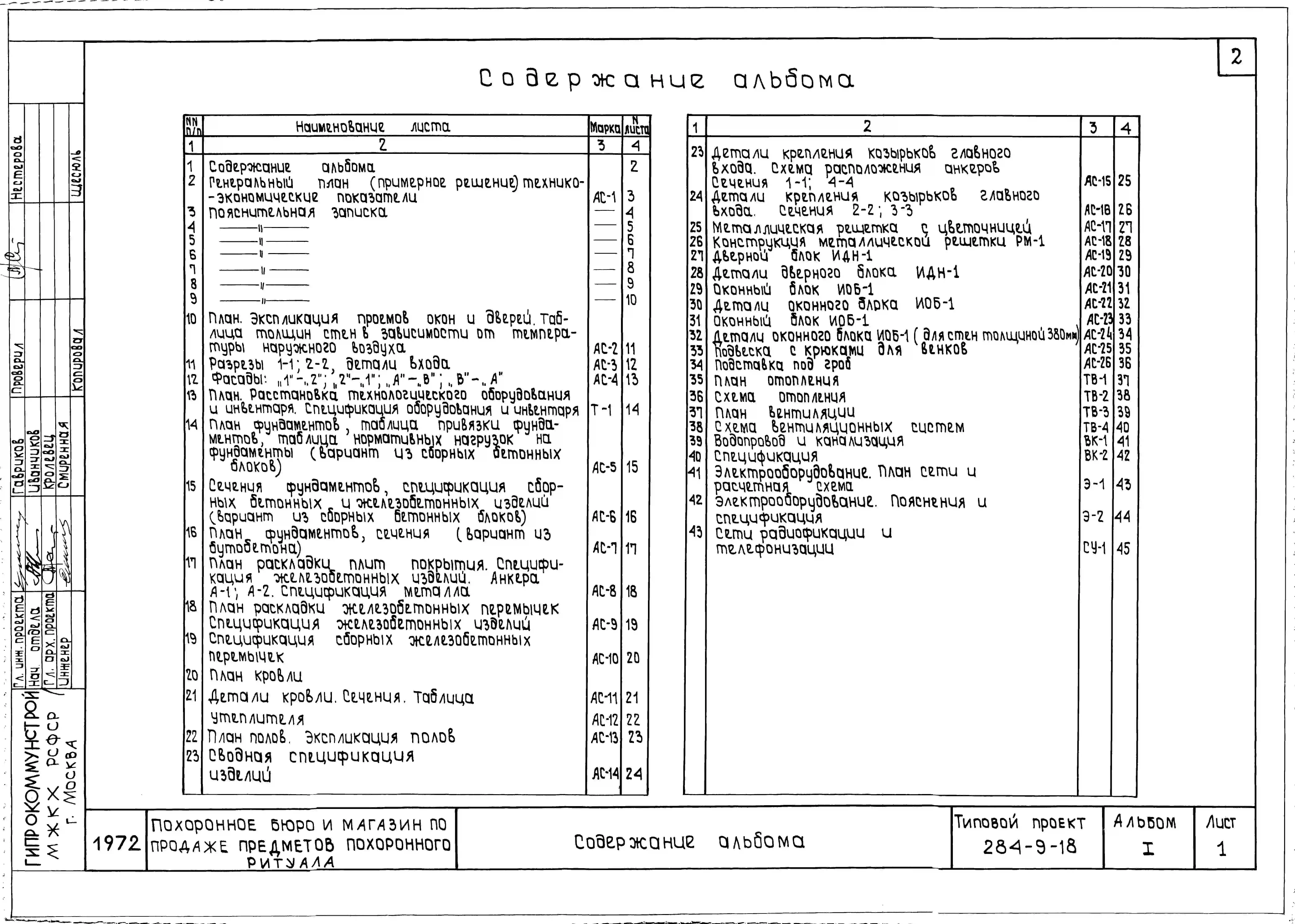 Типовой проект 284-9-18 Похоронное бюро и магазин по продаже предметов похоронного ритуала, для строительства в 1В подрайоне, 2 и 3 климатических районах