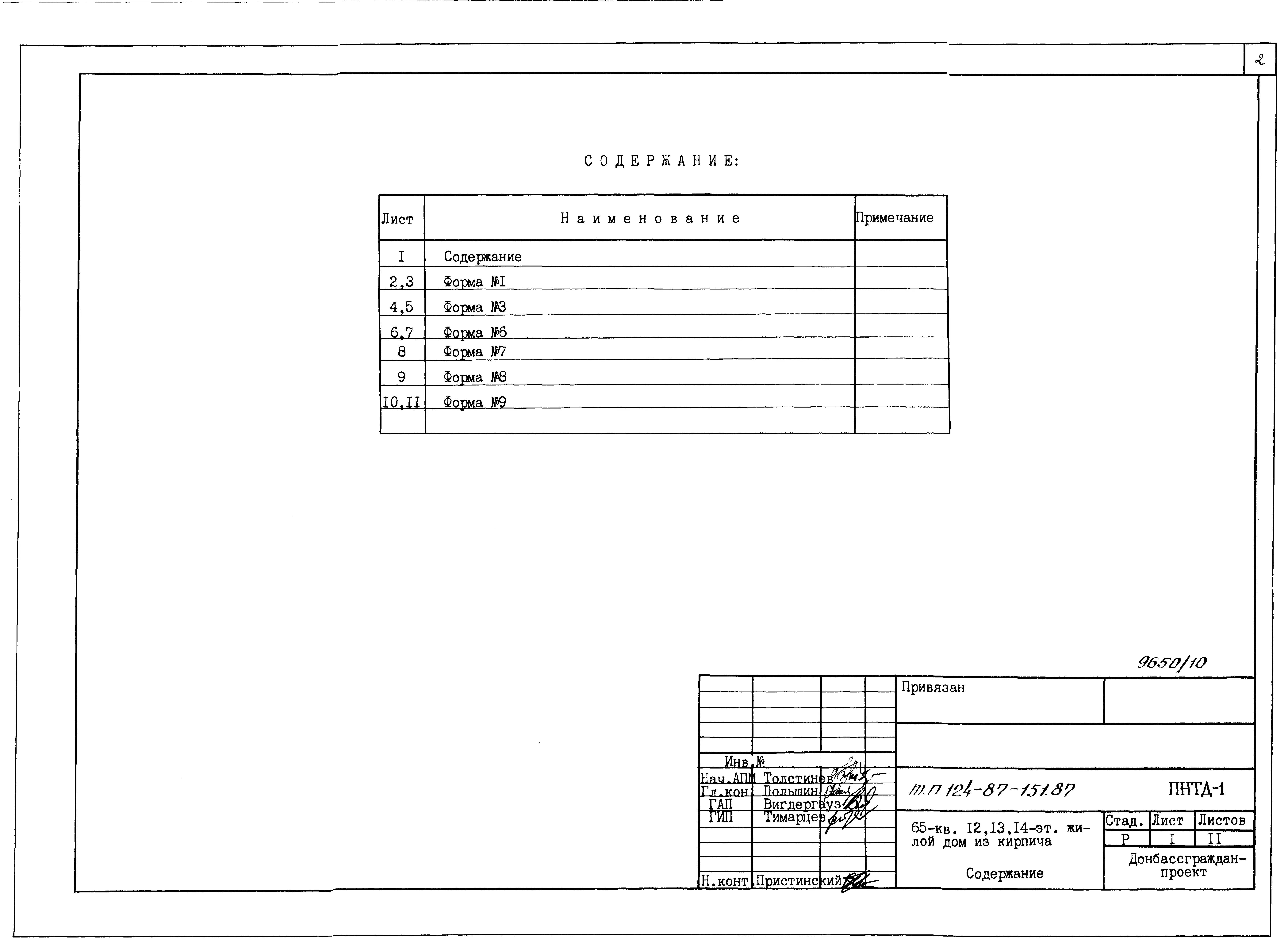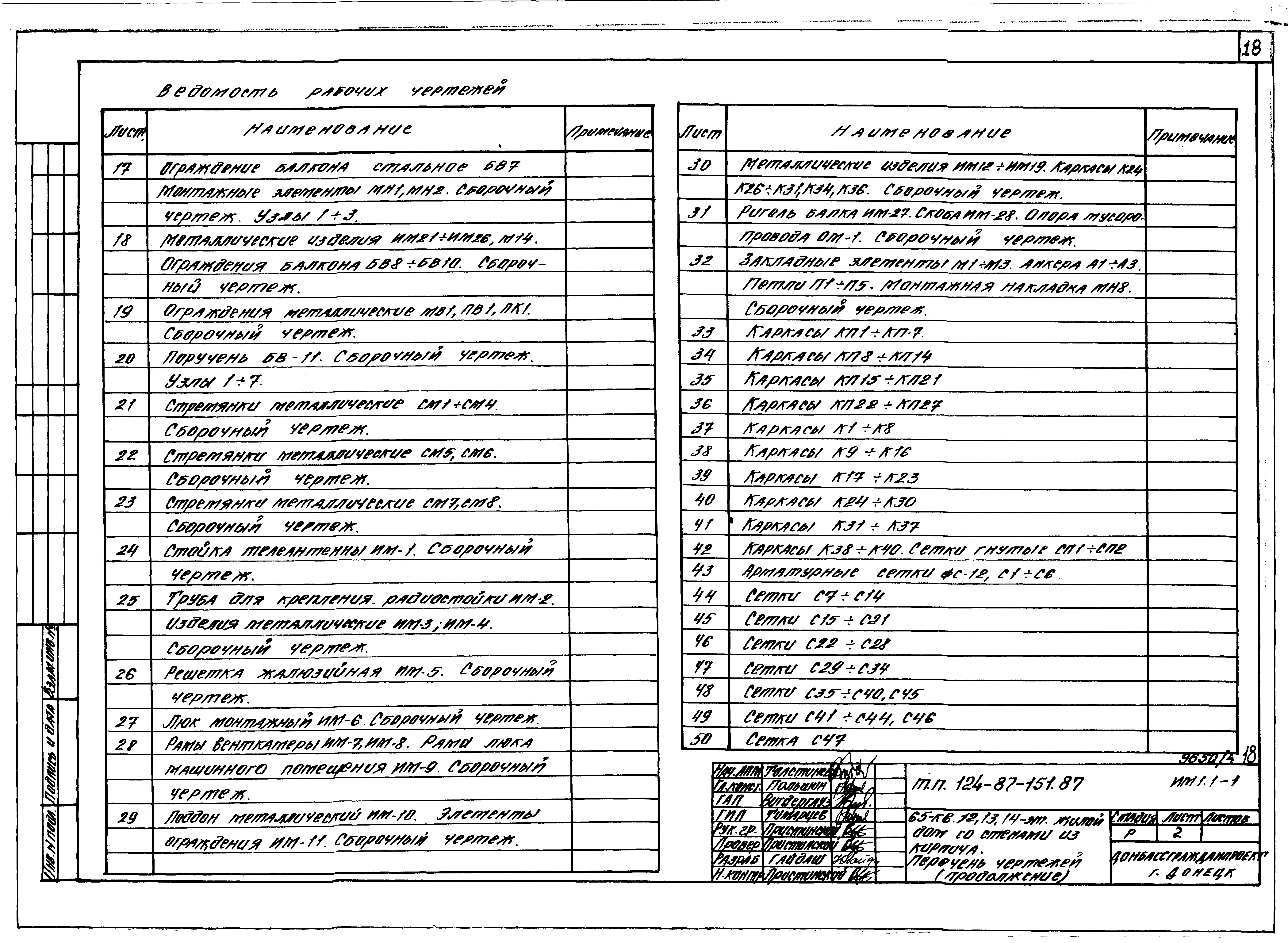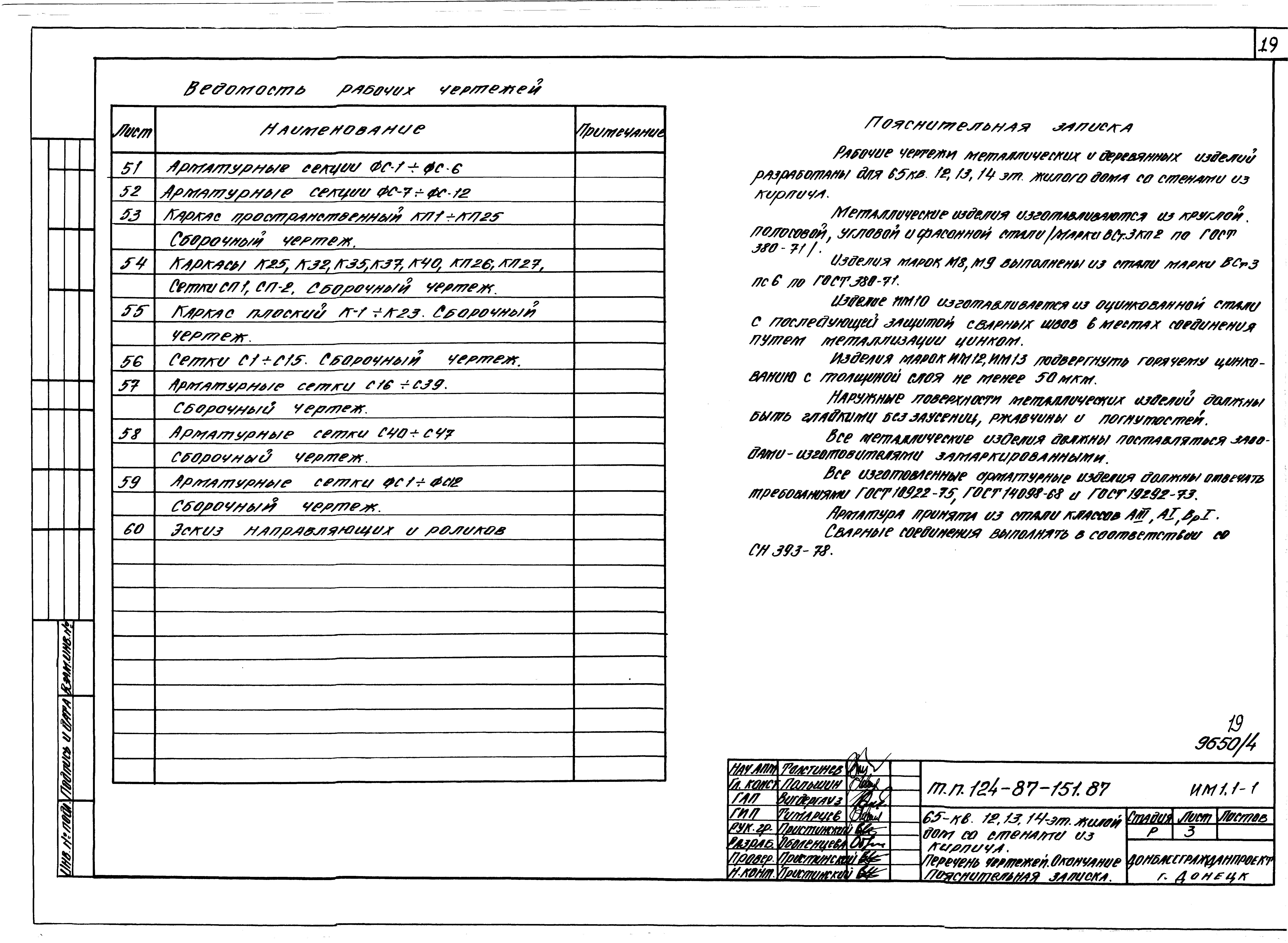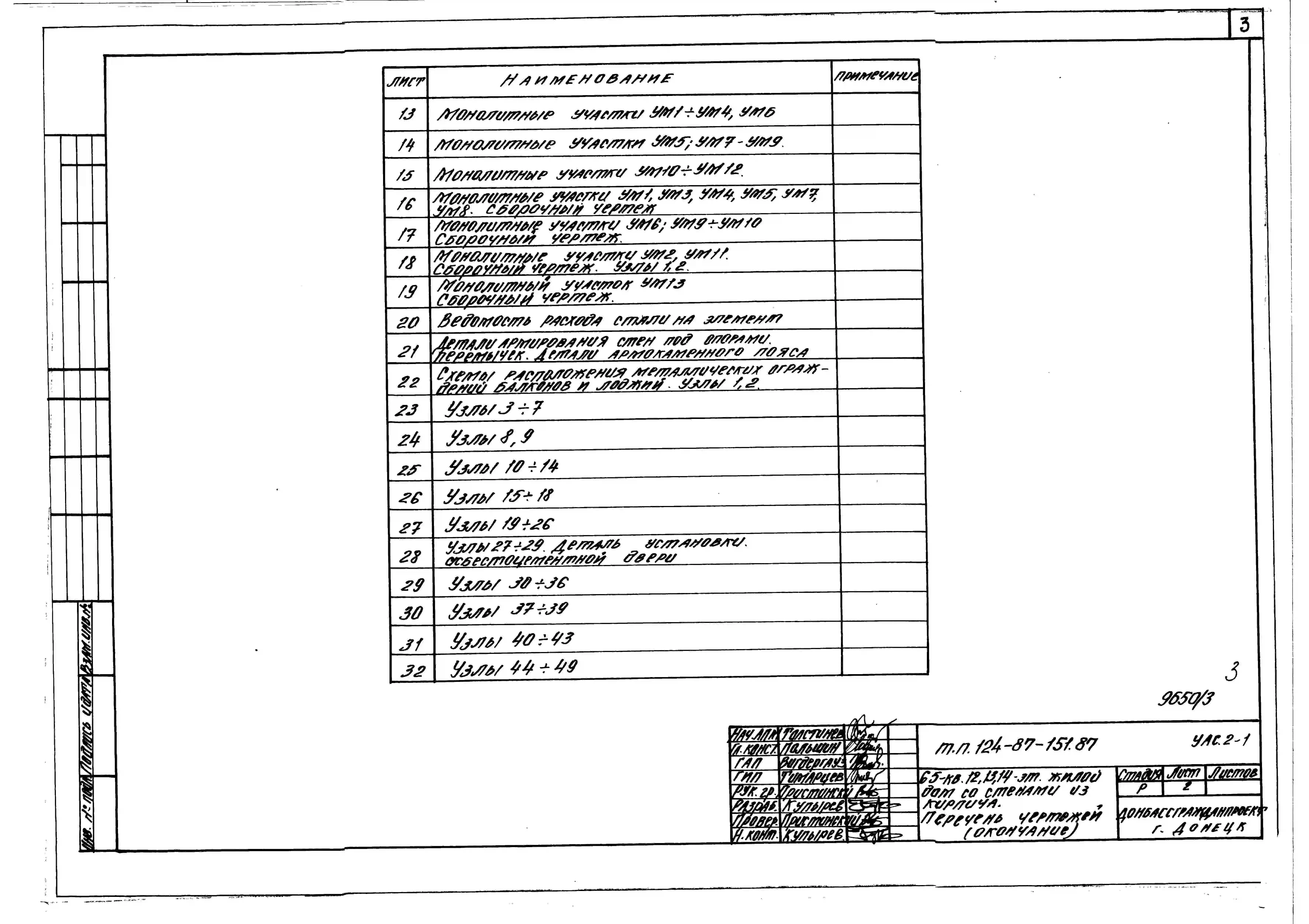 Типовой проект 124-87-151.87 65-квартирный 12, 13, 14-этажный жилой дом со стенами из кирпича. Паспорт проекта (формат PDF) Чертежи (формат TIF)