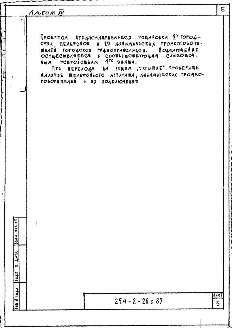 Типовой проект П-4-1185(254-2-26с.85) Вспомогательные помещения в подвале акушерского с стенами из кирпича на 30 коек для существующих ЦРБ, (убежище на 1185 человек, размеры убежища 78,95м на 34,2м, режимы вентиляции 1,2).. Чертежи (формат TIF) Паспорт проекта