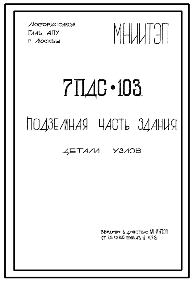 Шифр 7ПДС-103 Детали узлов . Подземная часть здания.