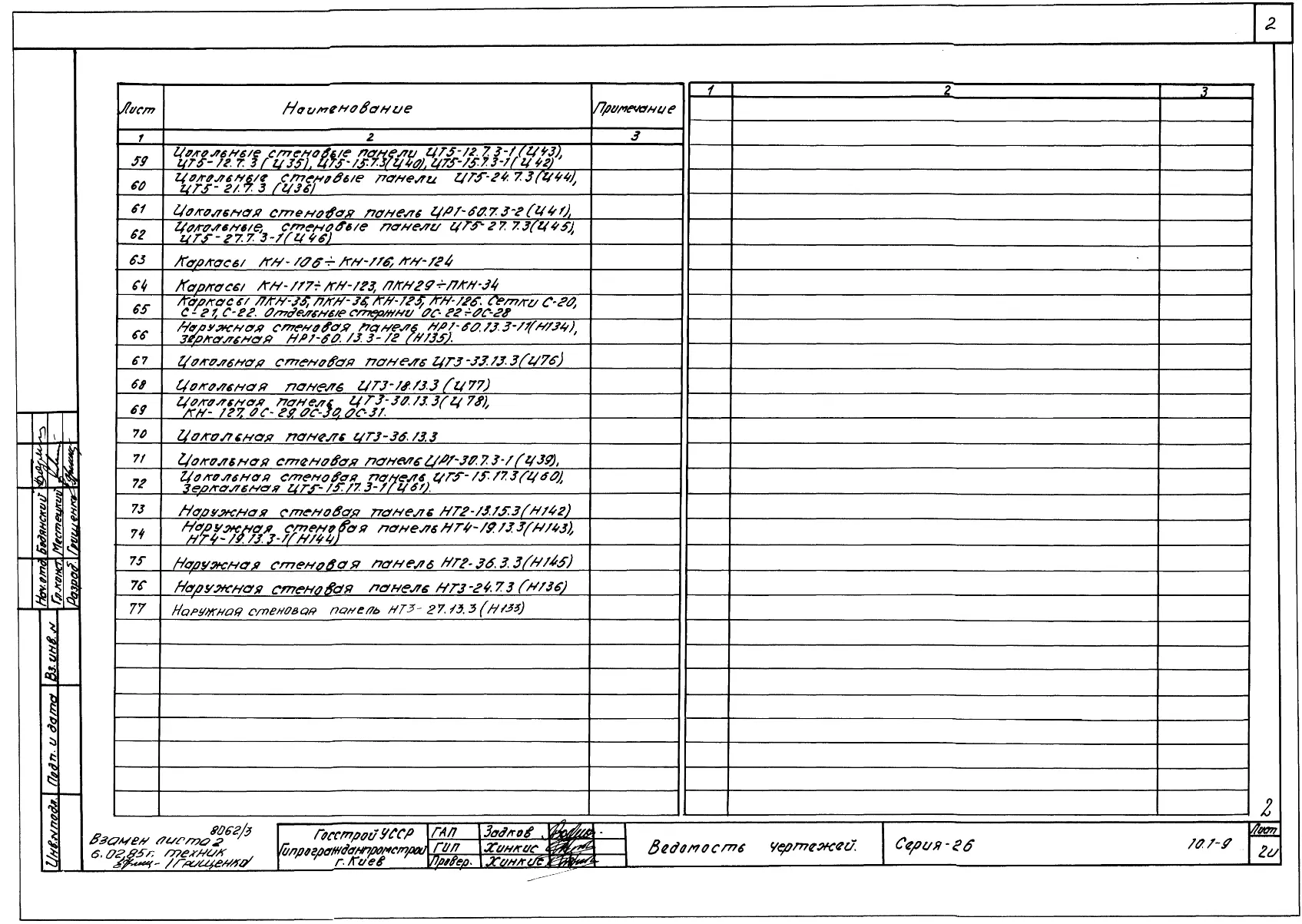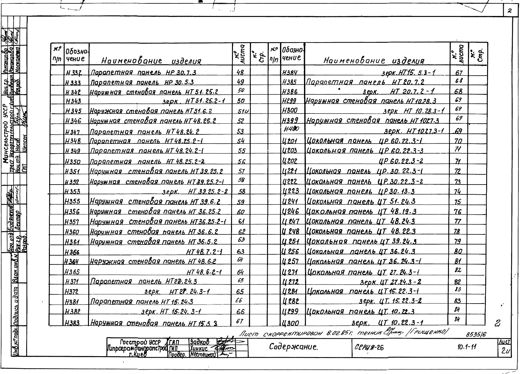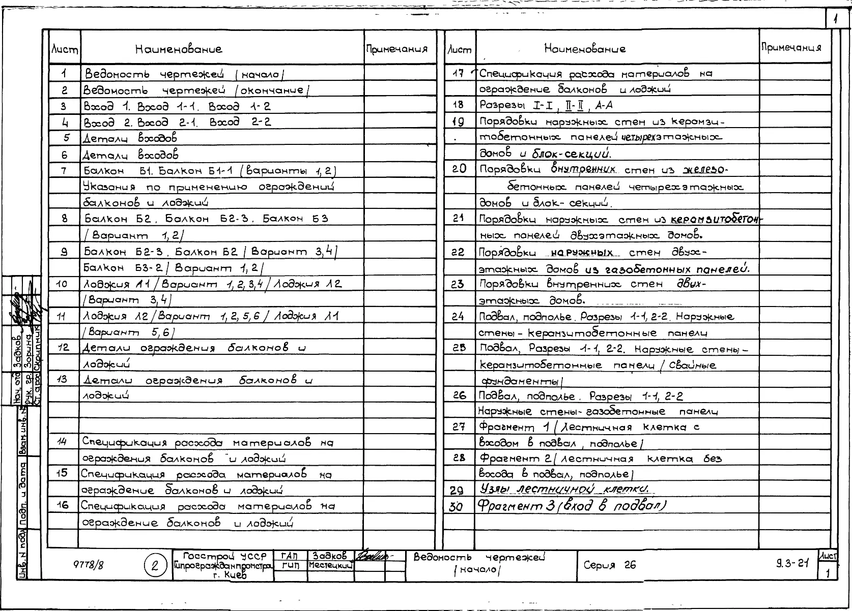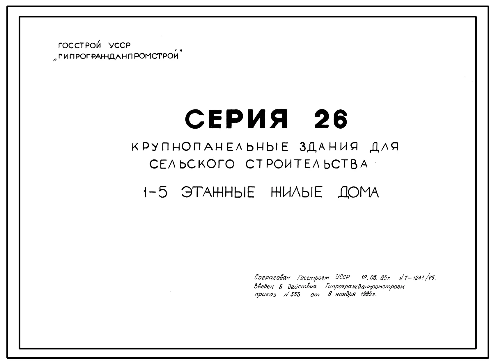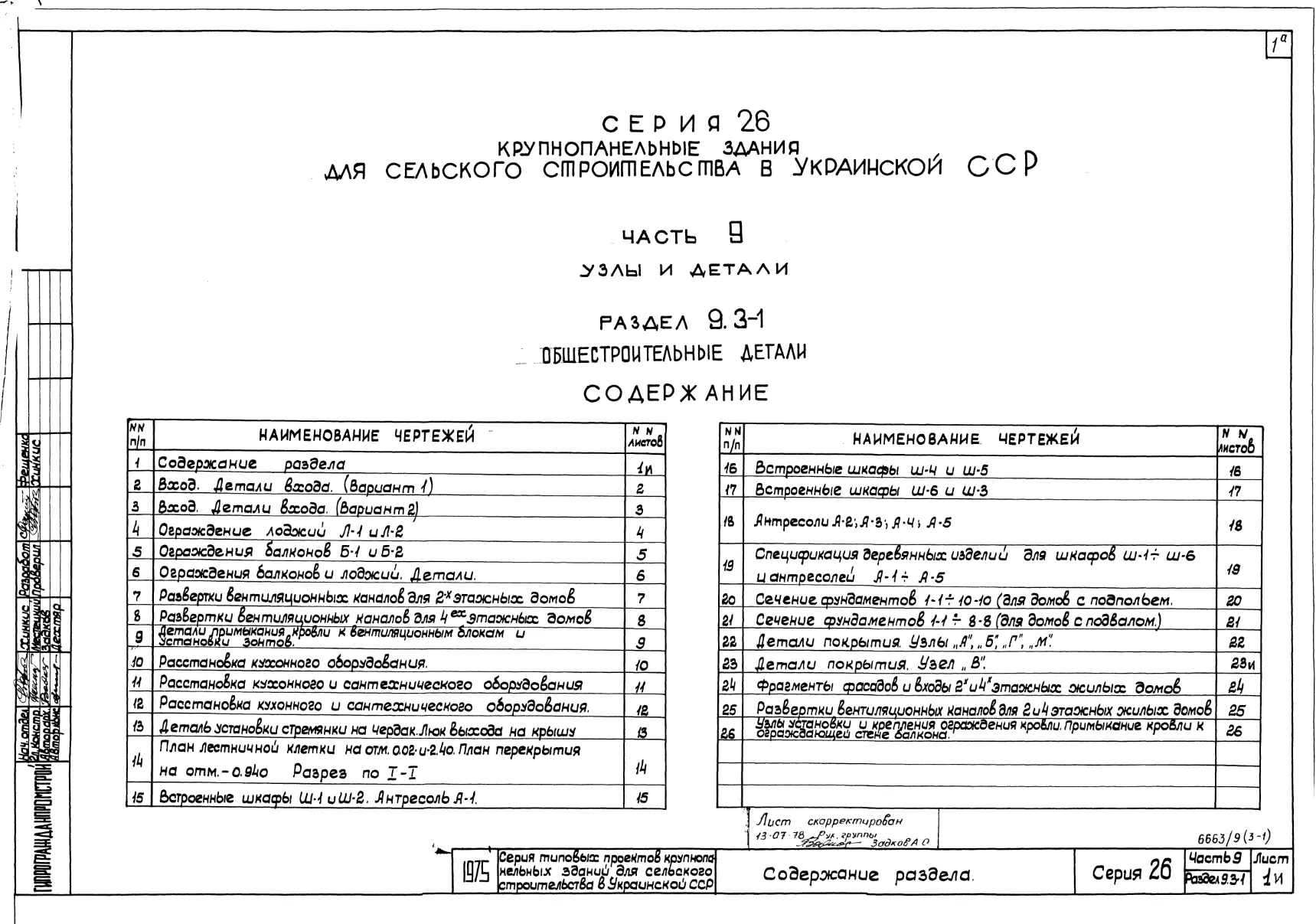 Серия 26 Крупнопанельные здания для сельского строительства в УССР Изделия к серии 26