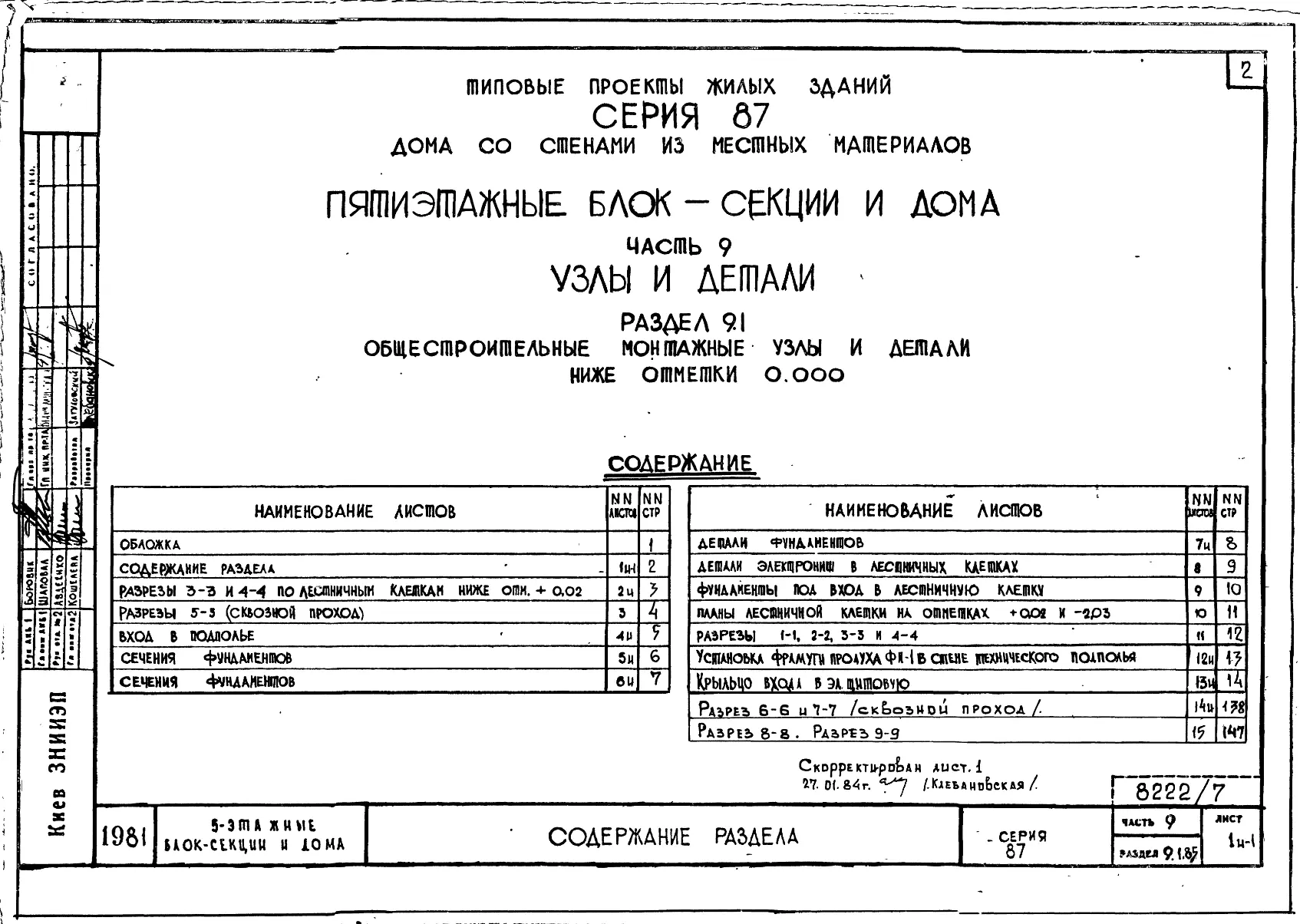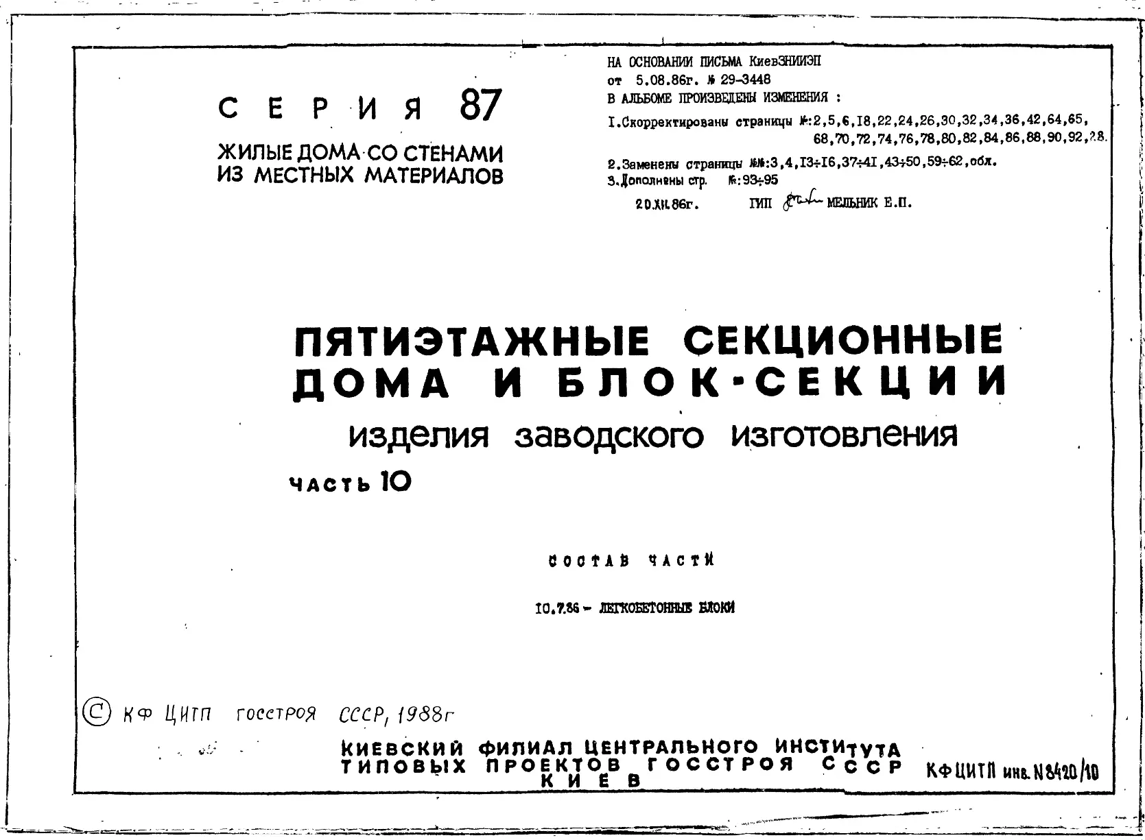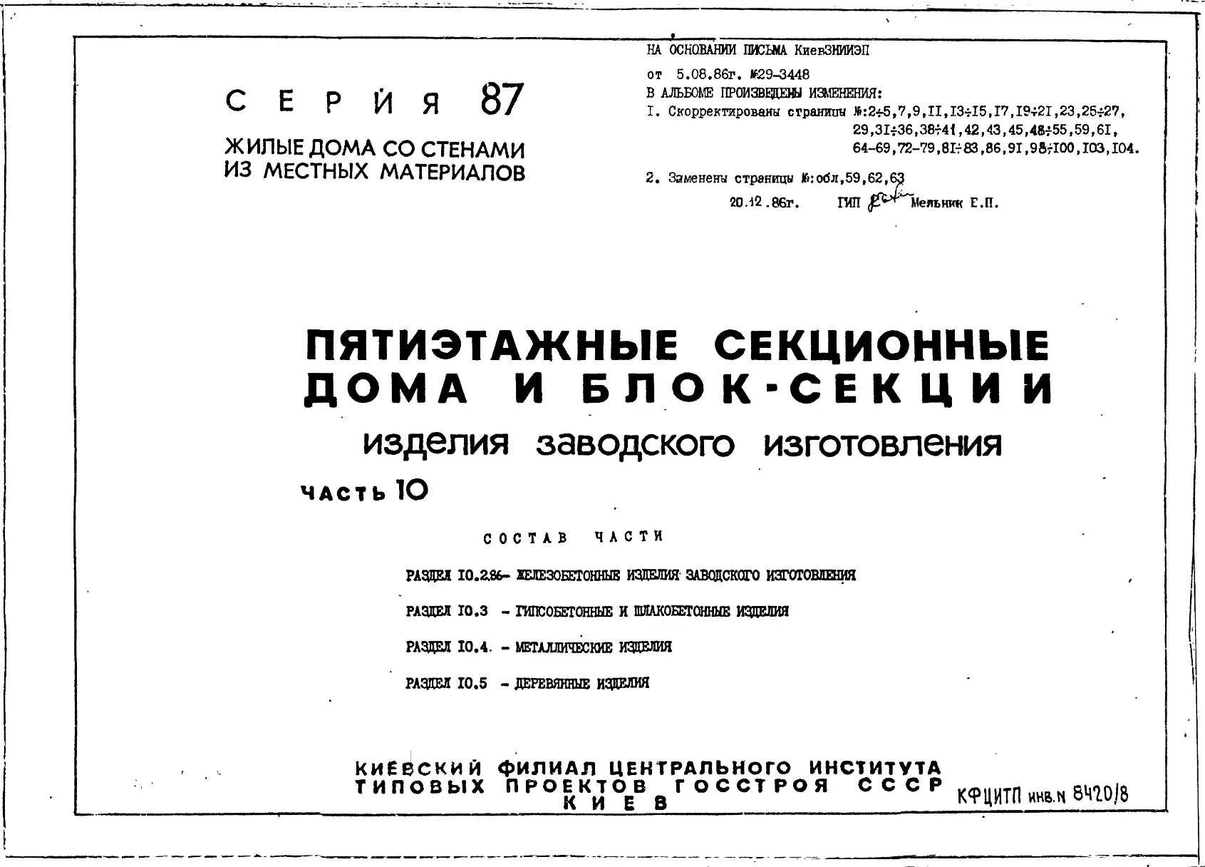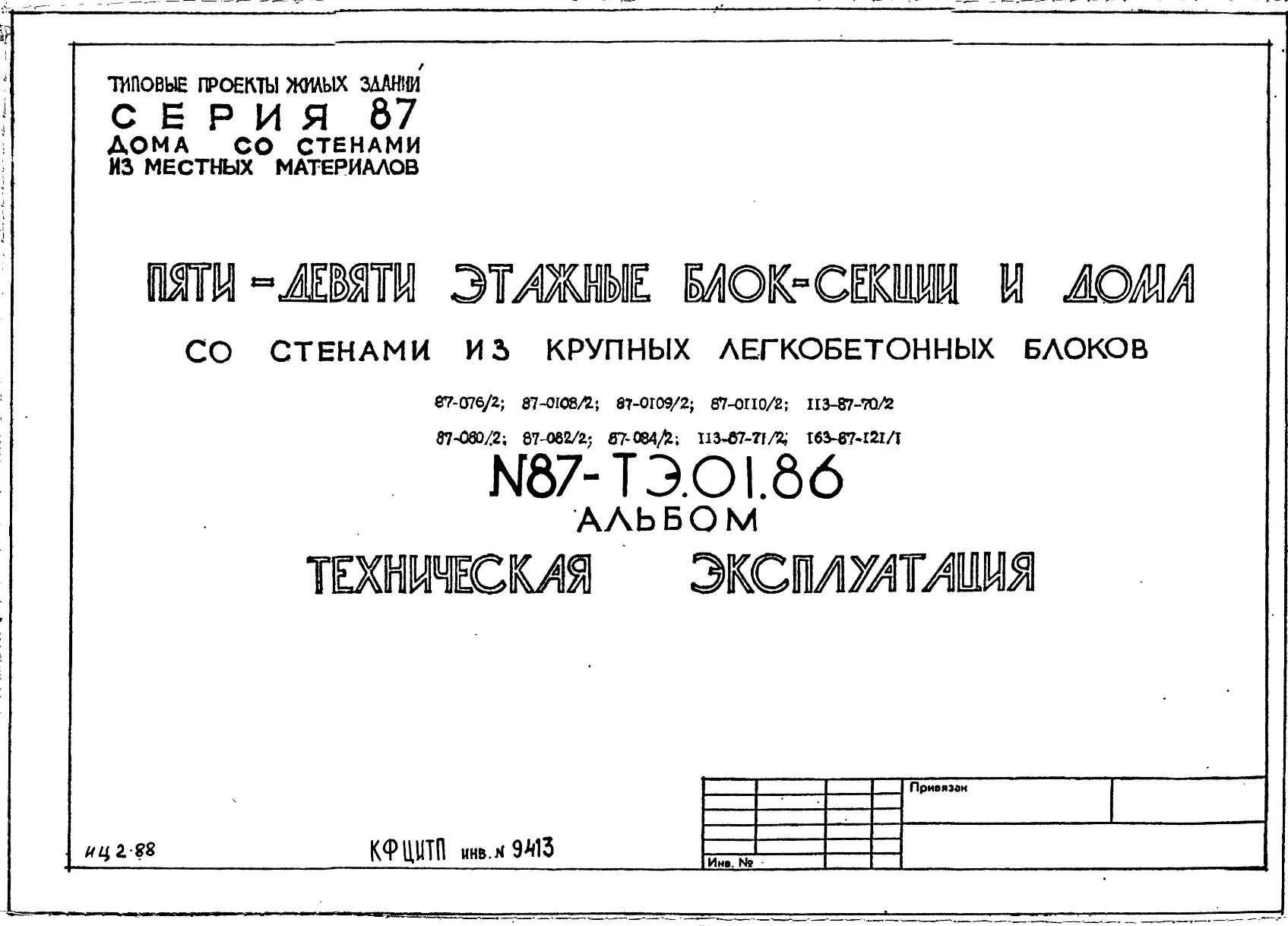 Серия 87 Жилые дома со стенами из местных материалов. Изделия к серии 87
