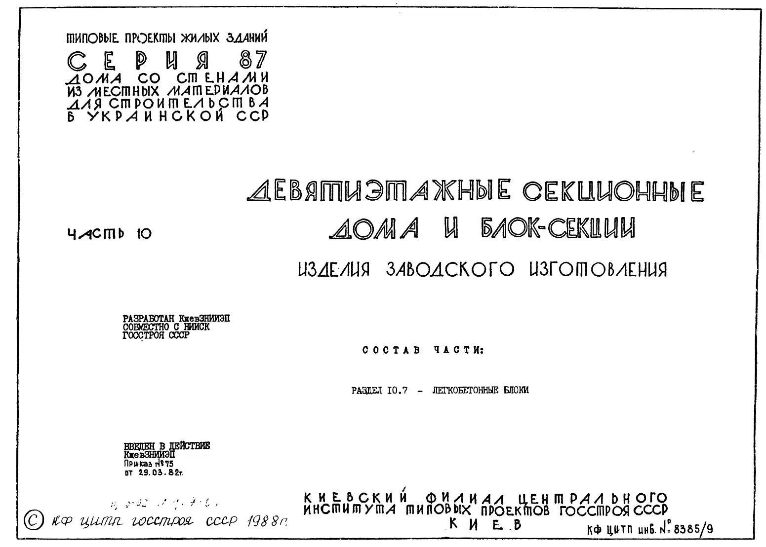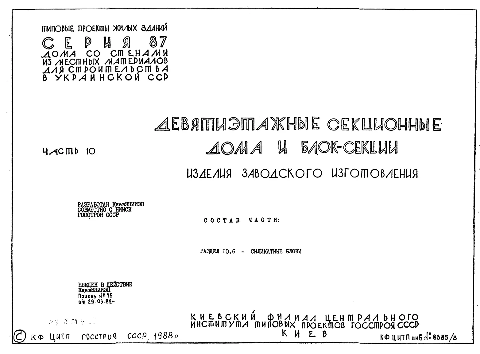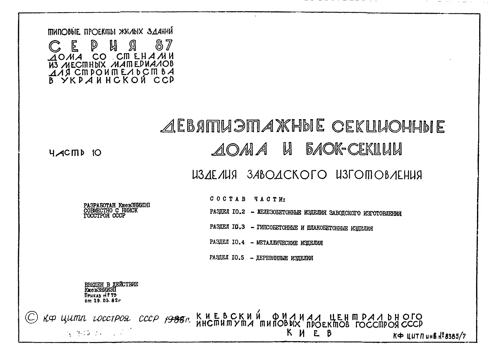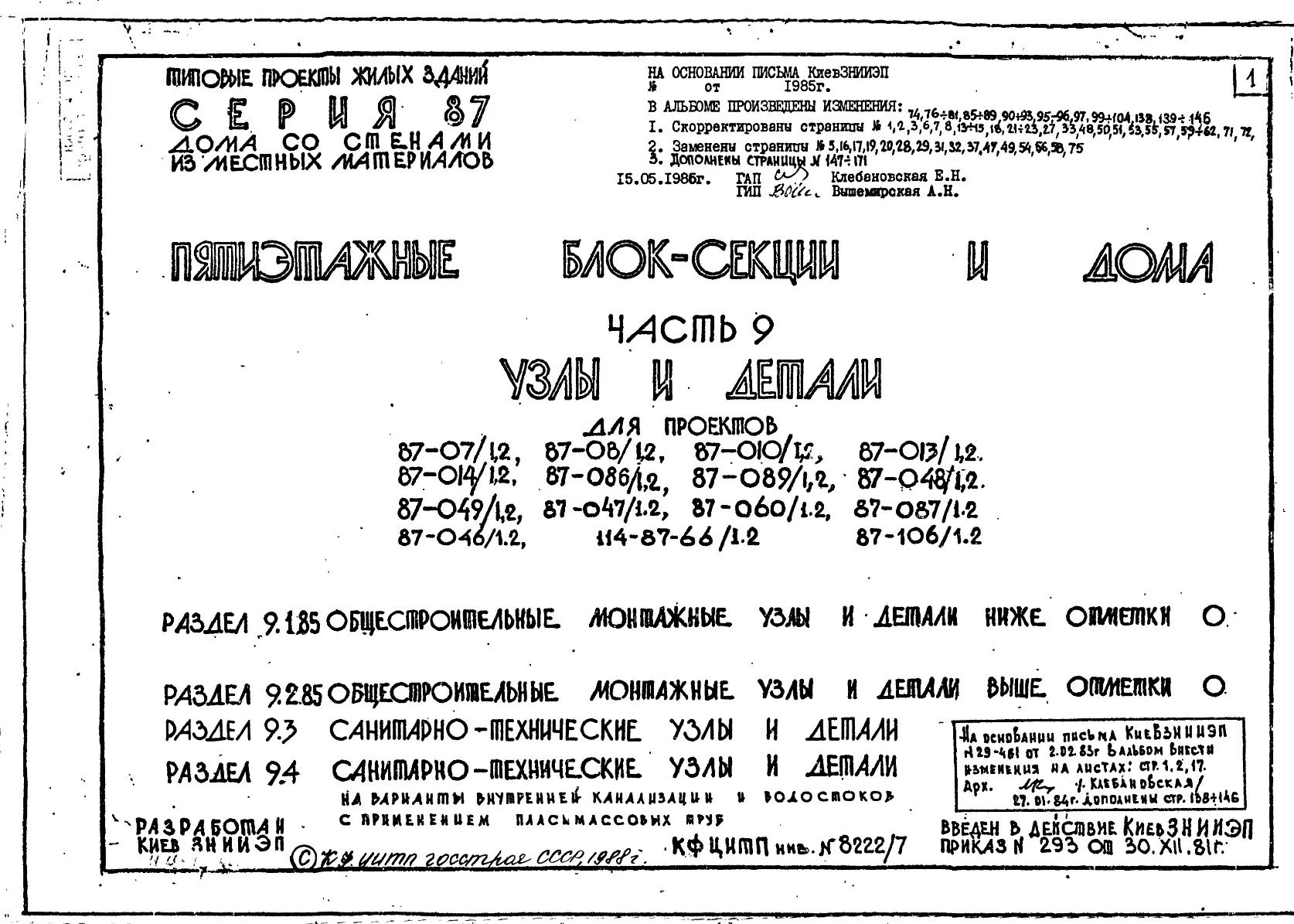 Серия 87 Жилые дома со стенами из местных материалов. Изделия к серии 87