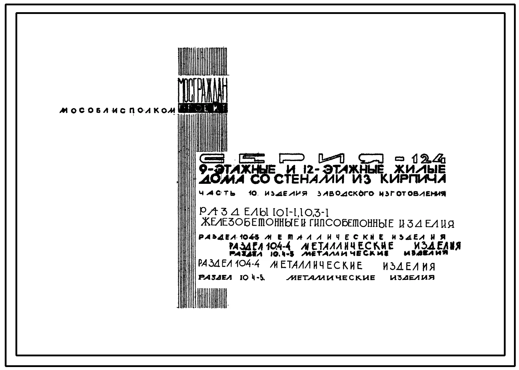 Серия 124 Девяти и двенадцатиэтажные жилые дома со стенами из кирпича. Изделия заводского изготовления. Изделия к серии 124
