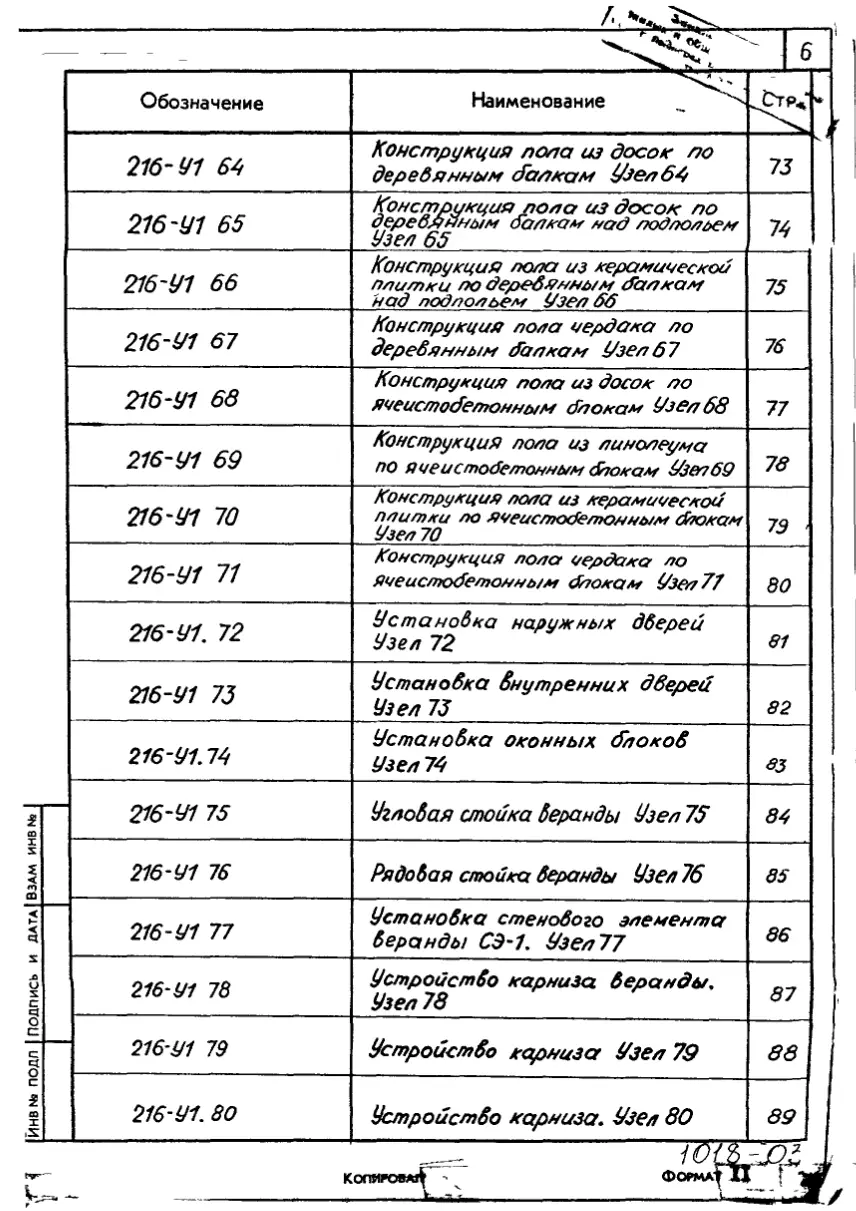 Серия 216 Индивидуальные жилые дома усадебного типа из блоков ячеистого бетона Изделия к серии 216