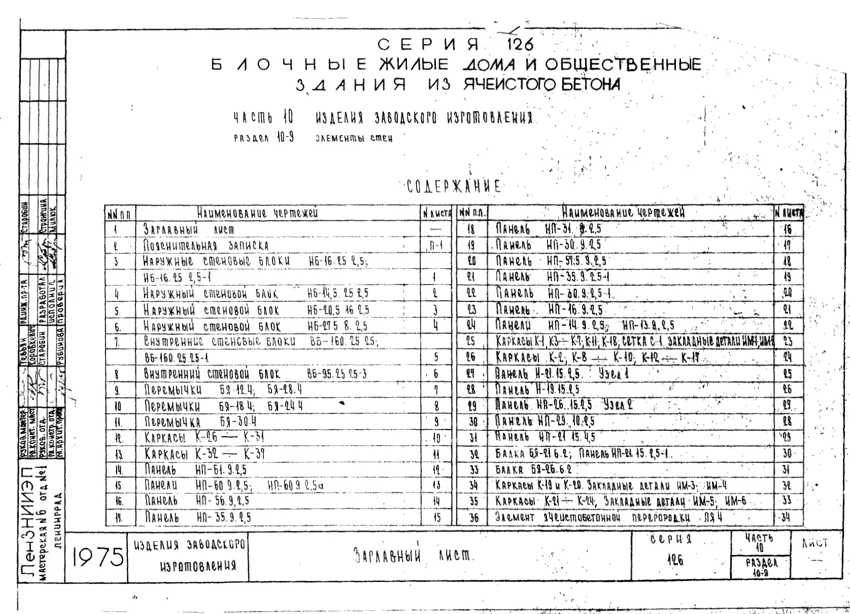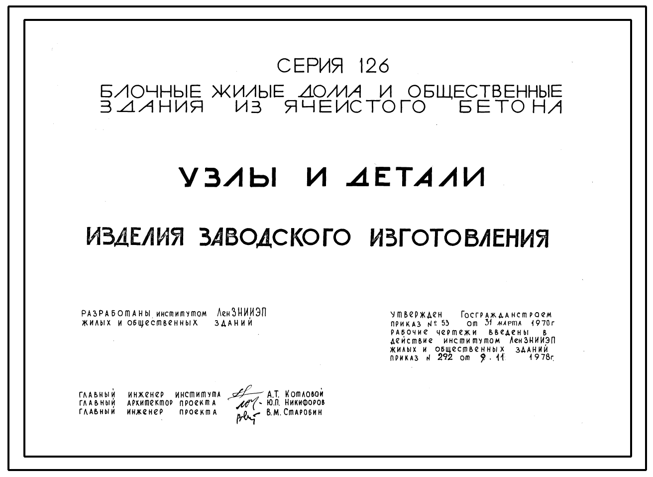 Серия 126 Блочные жилые дома и общественные здания из ячеистого бетона. Изделия к серии