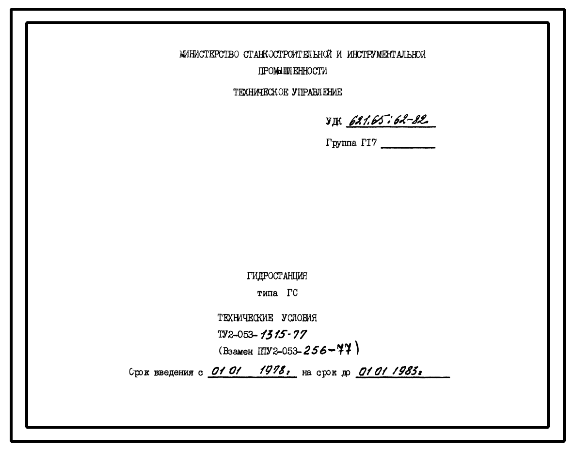 Шифр ТУ2-053-1315-77 Гидростанция типа ГС