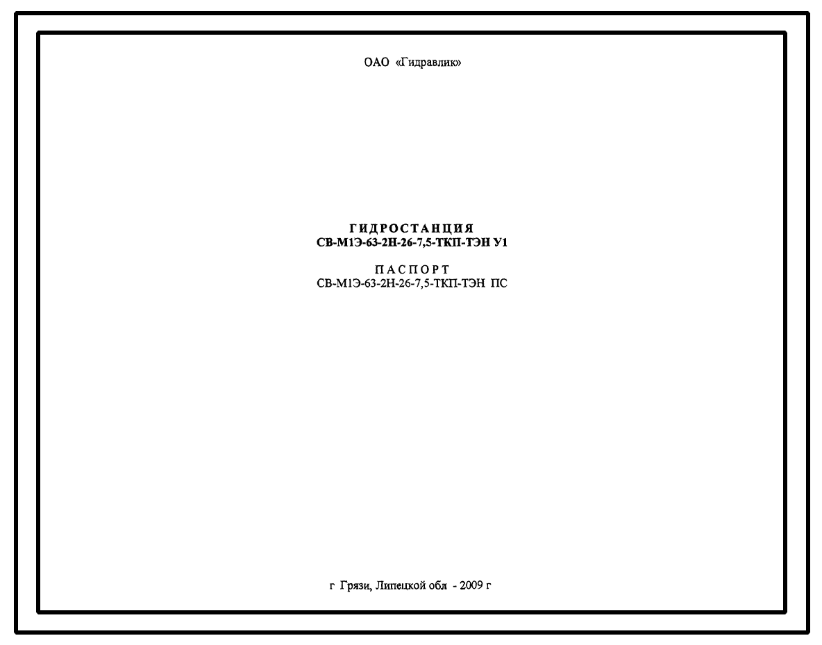 Шифр СВ-М1Э-2Н-26-7,5-ТКП-ТЭН.У1 Гидростанция СВ-М1Э-2Н-26-7,5-ТКП-ТЭН.У1