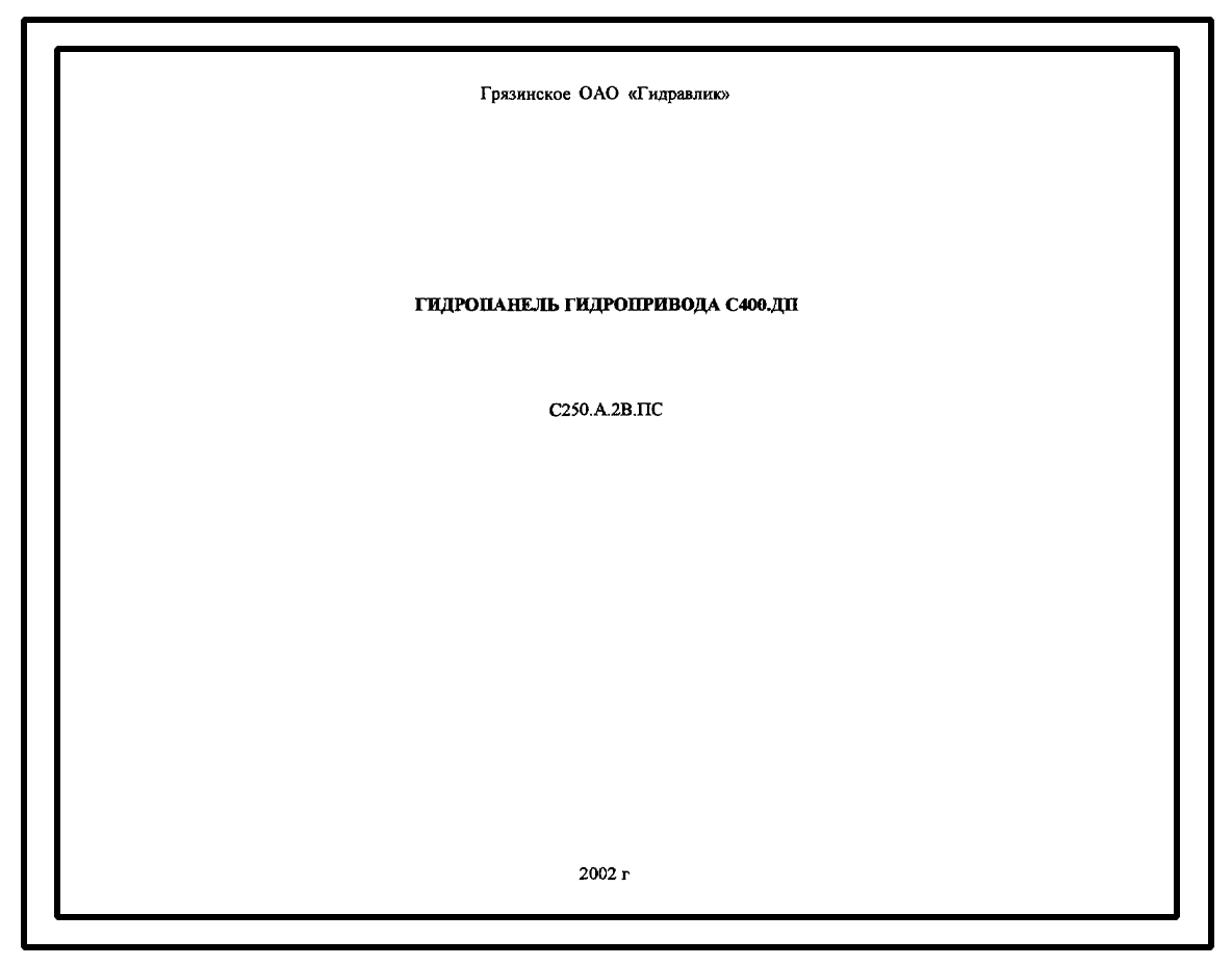 Шифр С250.А.2В.ПС Гидропанель гидропривода С400.ДП