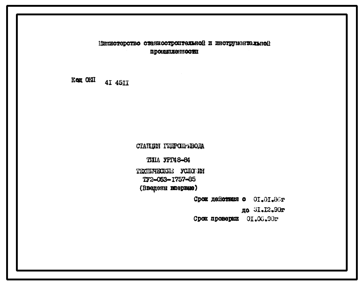 Шифр ТУ2-053-1757-85 Станция гидропривода типа УРГ48-84