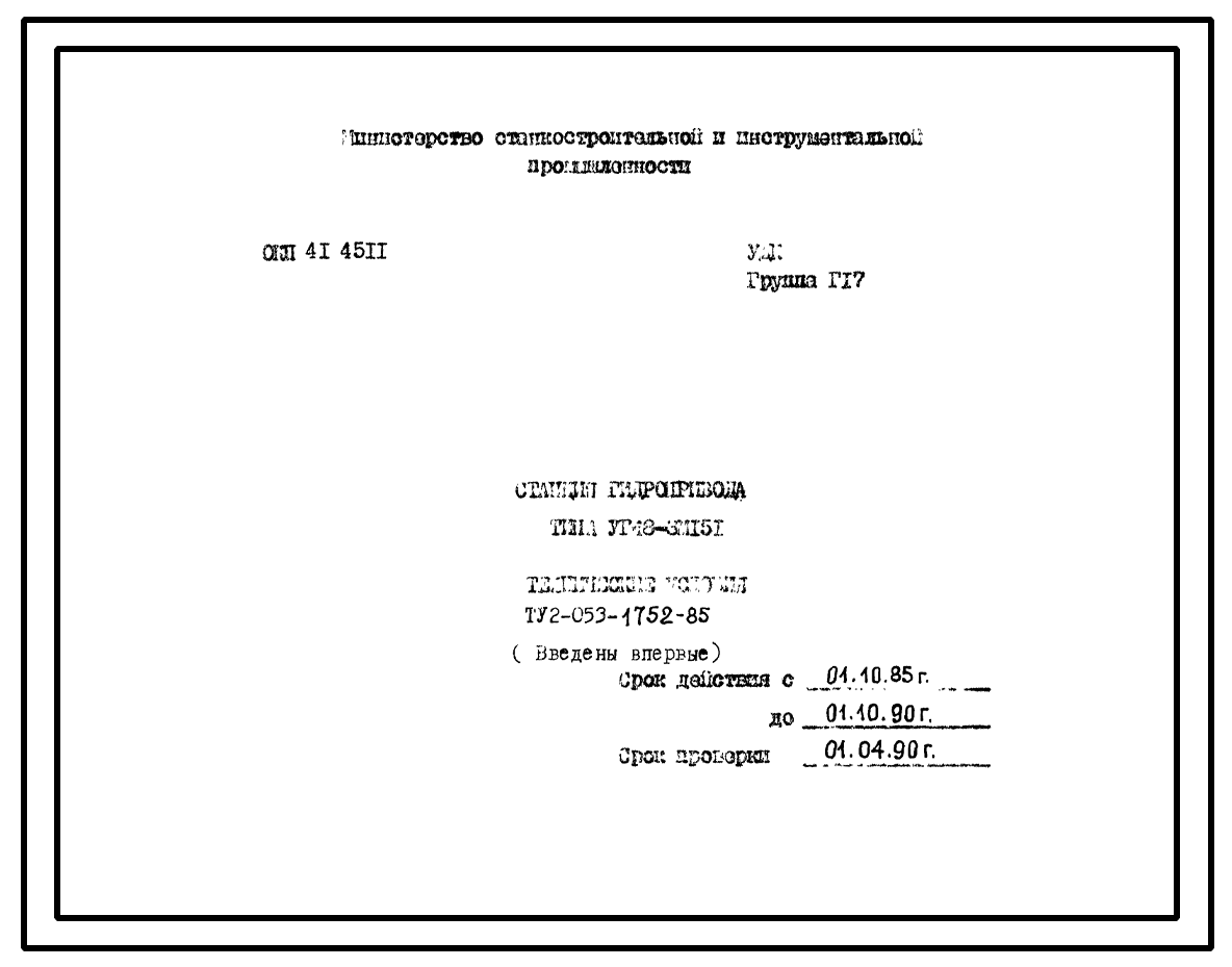 Шифр ТУ2-053-1752-85 Станция гидропривода типа УГ48-2М151