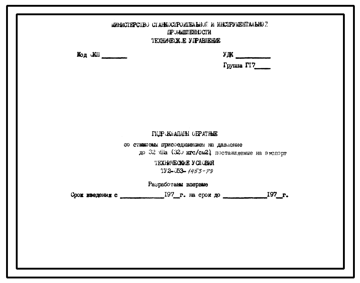 Шифр ТУ2-053-1453-79 Гидроклапаны обратные со стыковым присоединением на давление до 32 МПа (320 кгс/см2)