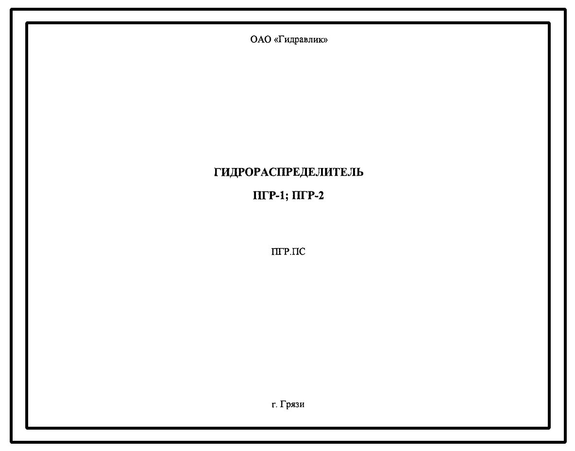 Шифр ПГР.ПС Гидрораспределитель ПГР-1; ПГР-2