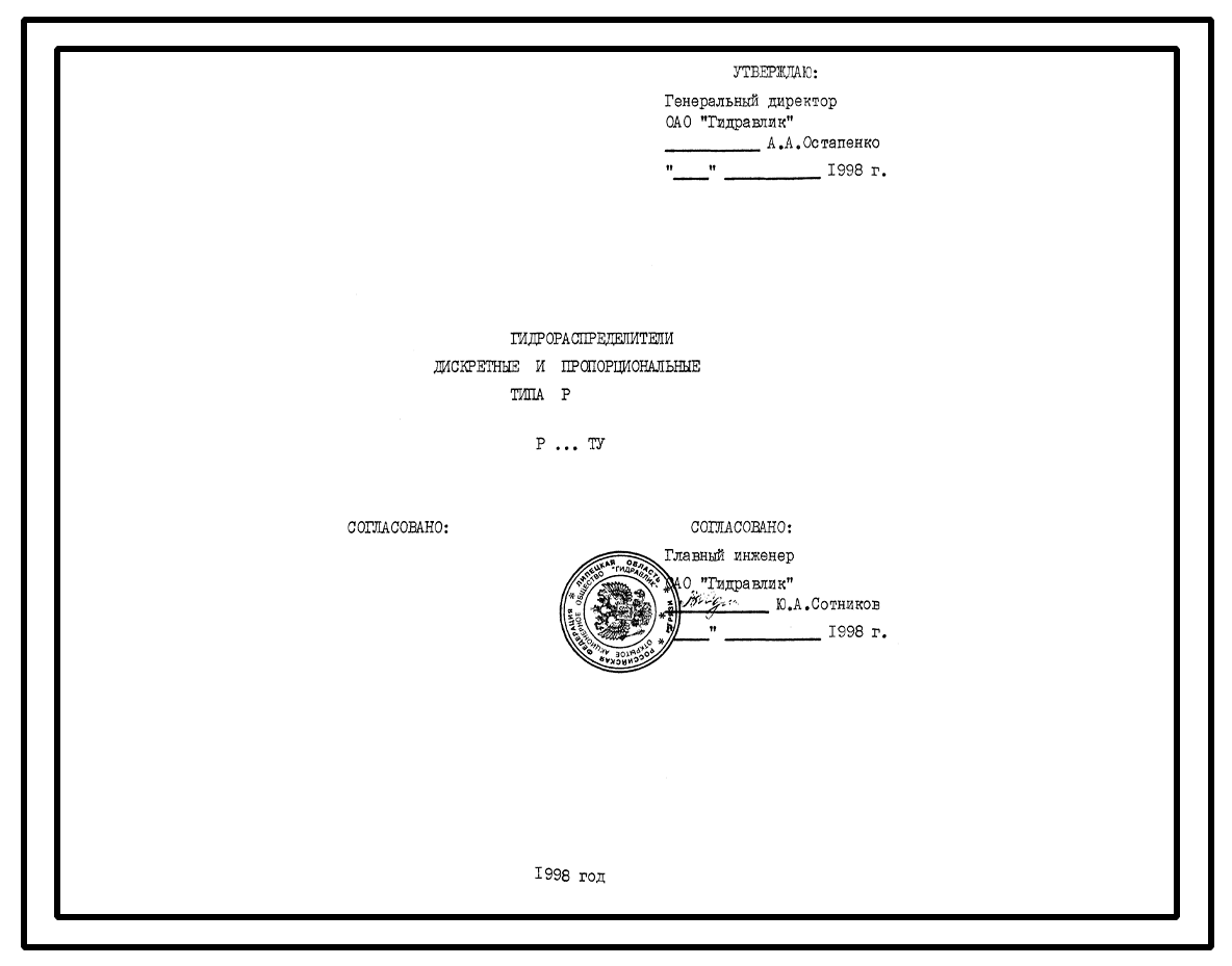 Шифр РМЭ-16ТУ Гидрораспределители дискретные и пропорциональные типа Р РМЭ-16ТУ