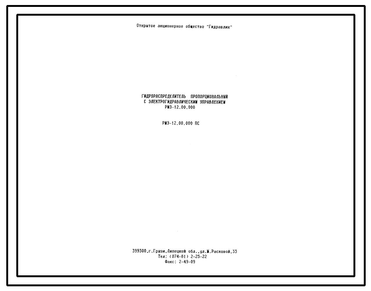 Шифр РМЭ-12.00.000 Гидрораспределитель пропорциональный с электрогидравлическим управлением РМЭ-12.00.000