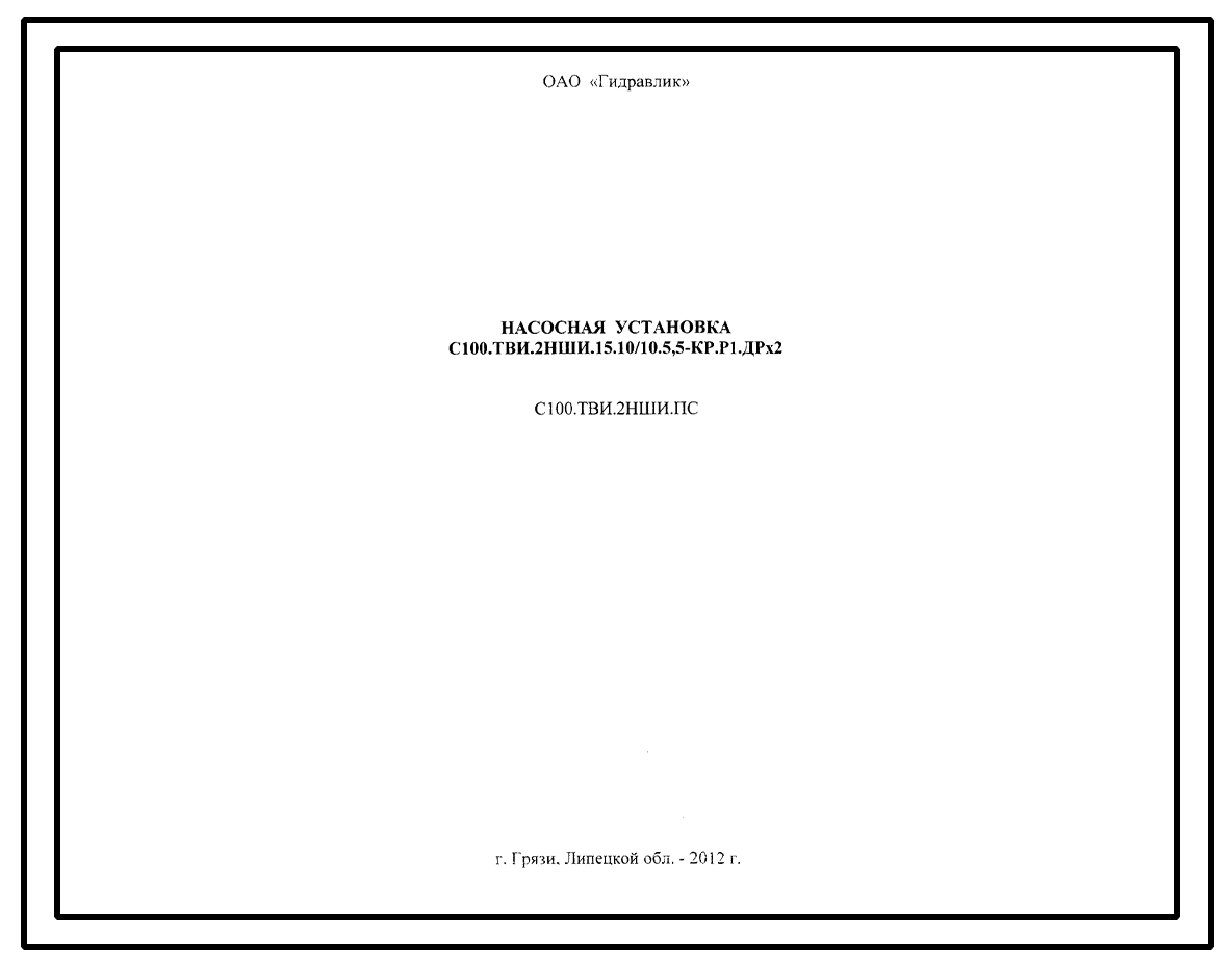 Шифр С100.ТВИ.2НШИ.ПС Насосная установка С100.ТВИ.2НШИ.15.10/10.5,5-КР.Р1.ДРх2