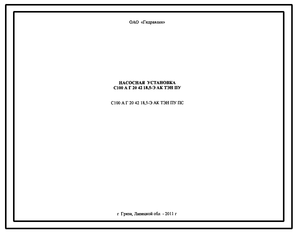 Шифр С100.А.Г.20.42.18,5-Э.АК.ТЭН.ПУ.ПС Насосная установка С100.А.Г.20.42.18,5-Э.АК.ТЭН.ПУ