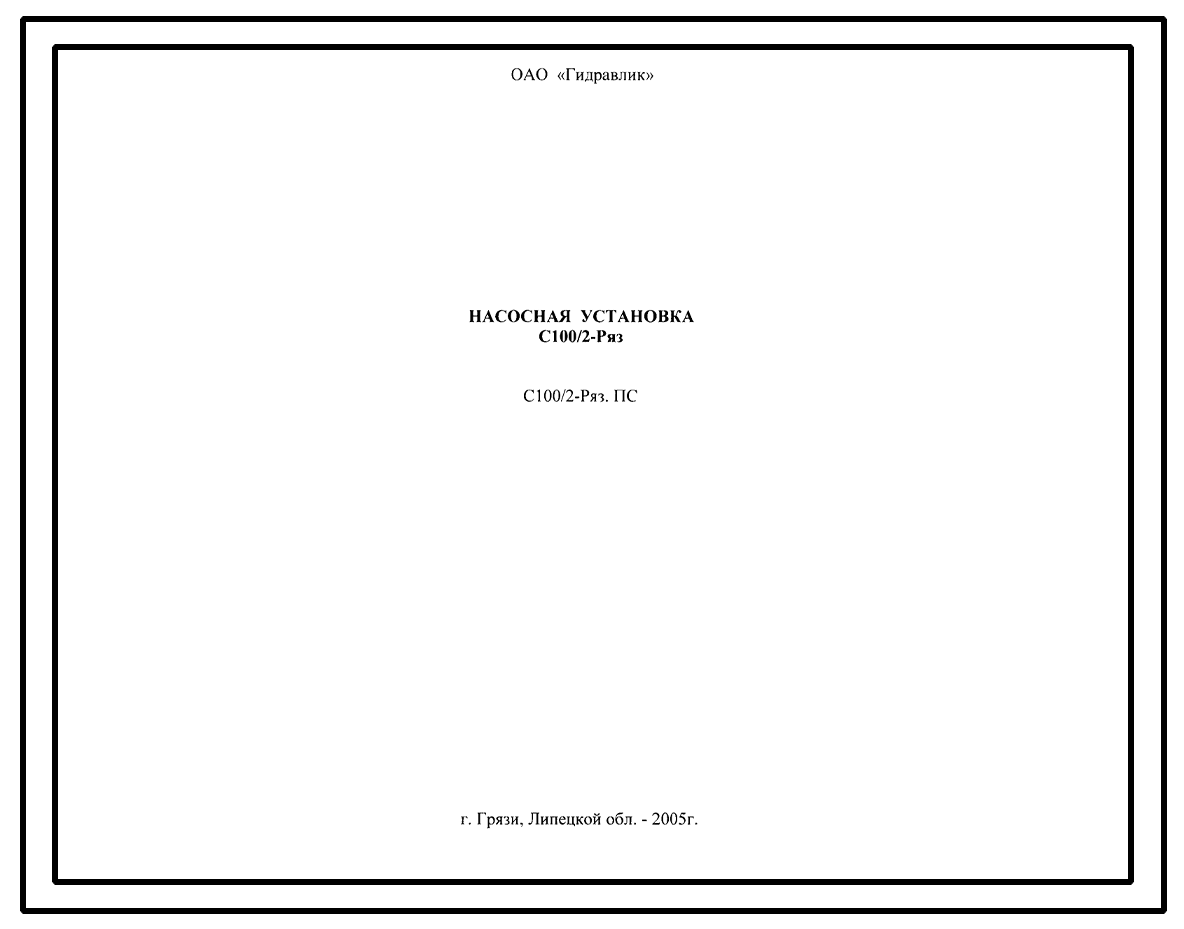 Шифр С100/2-Ряз.ПС Насосная установка С100/2-Ряз