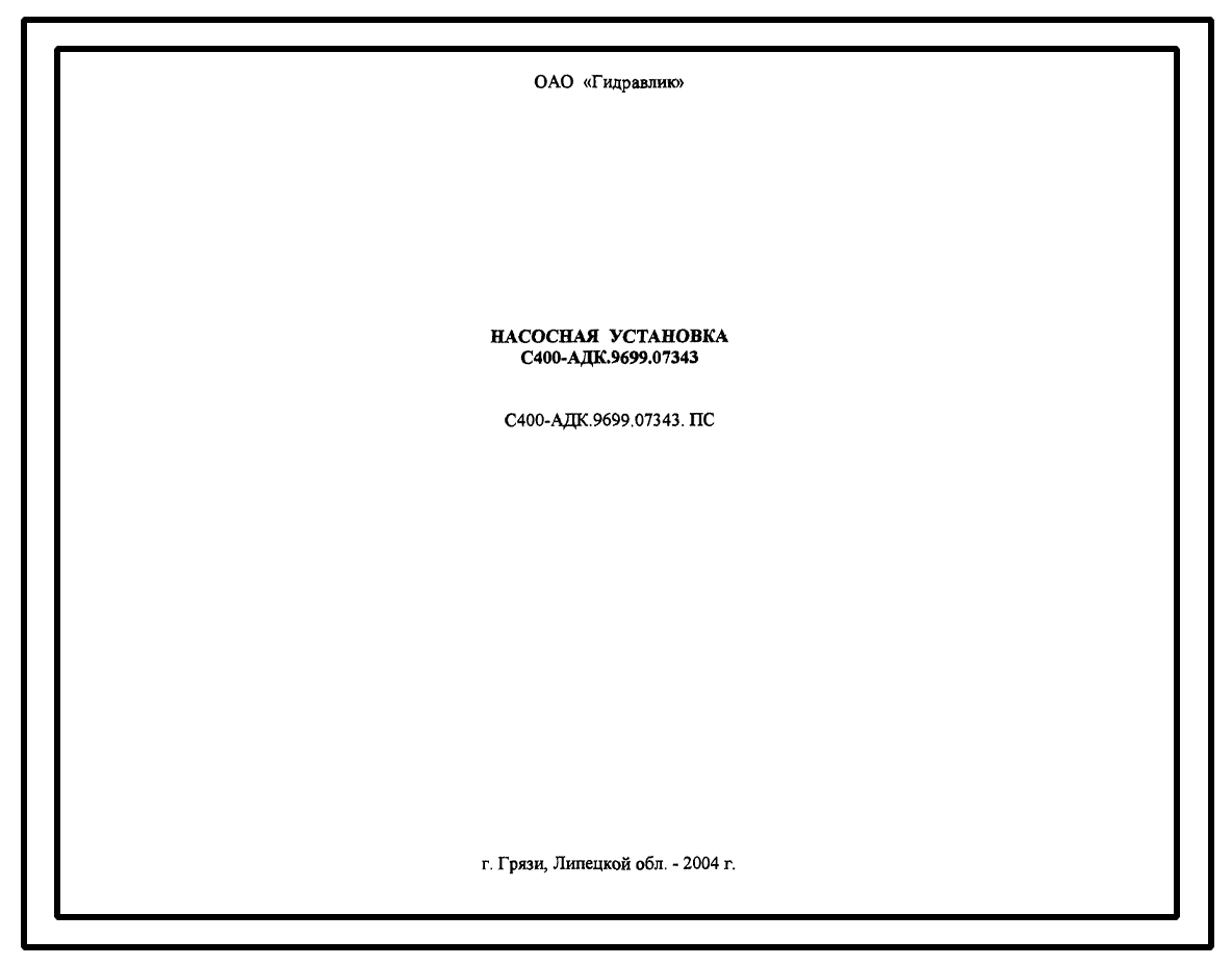 Шифр С400-АДК.9699.07343.ПС Насосная установка С400-АДК.9699.07343