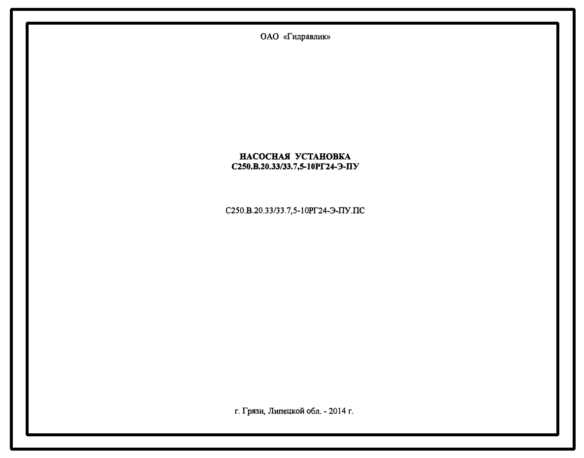 Шифр С250.В.20.33/33.7,5-10РГ24-Э-ПУ.ПС Насосная установка С250.В.20.33/33.7,5-10РГ24-Э-ПУ