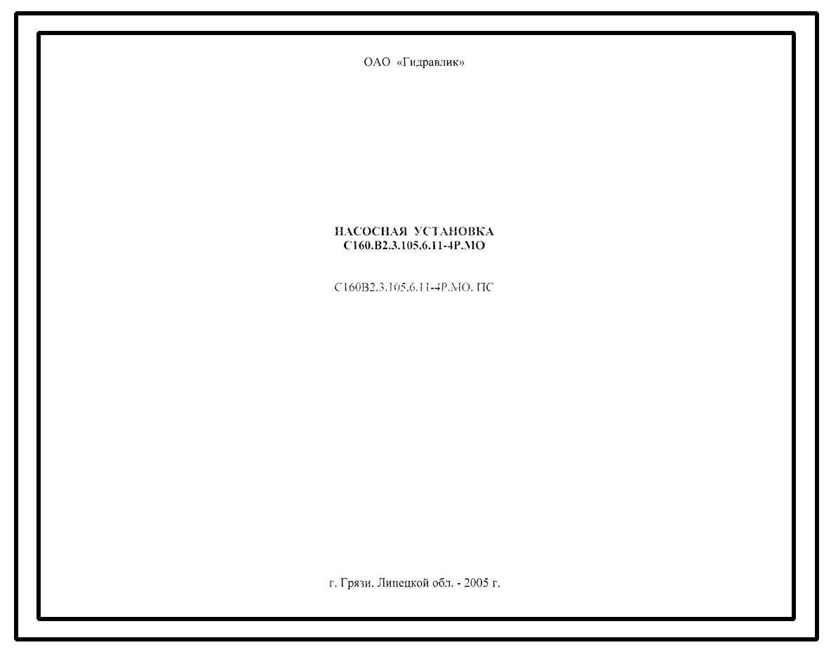 Шифр С160В2.3.105.6.11-4Р.МО.ПС Насосная установка С160В2.3.105.6.11-4Р.МО