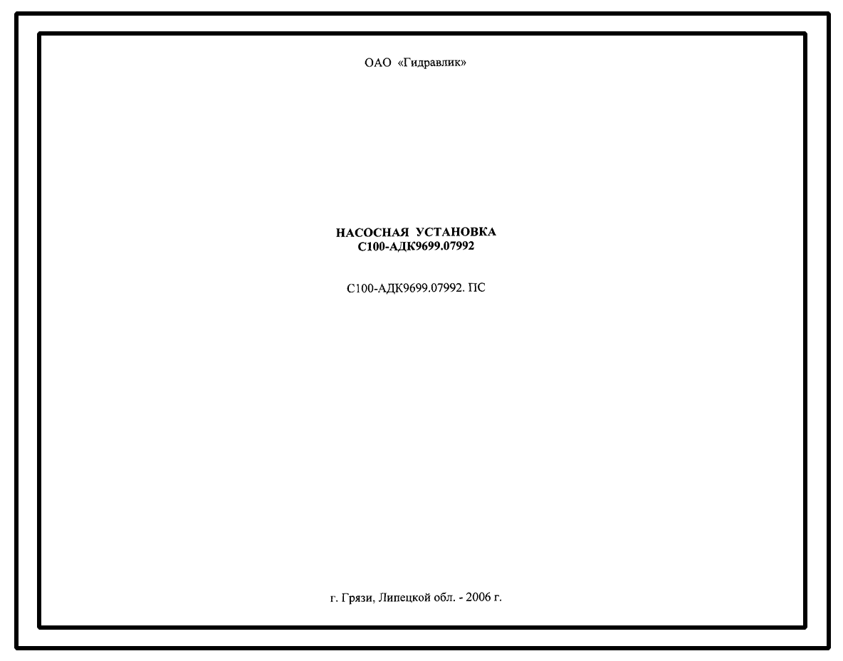 Шифр С100-АДК9699.07992.ПС Насосная установка С100-АДК9699.07992