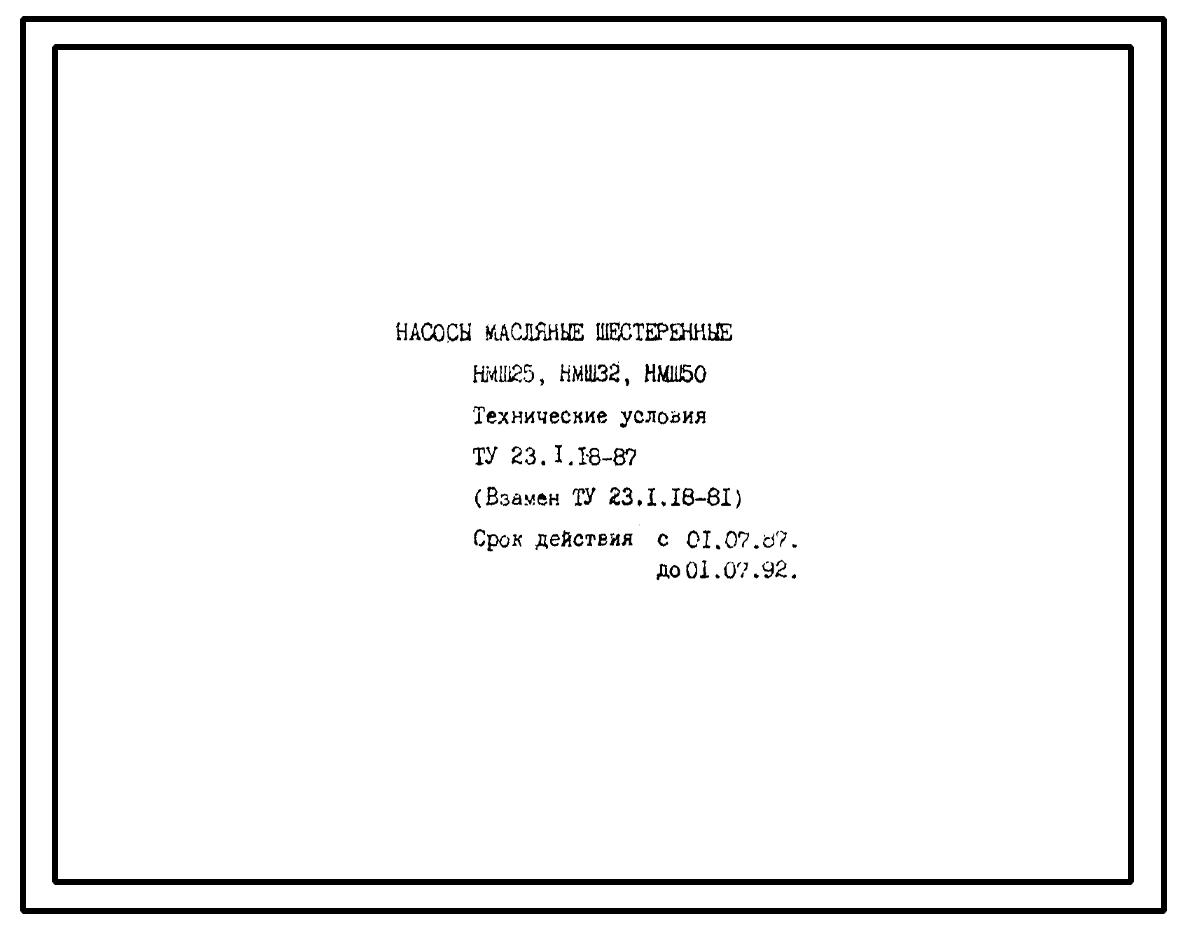 Шифр ТУ 23.1.18.-87 Насосы маслянные шестеренные НМШ25, НМШ32, НМШ50