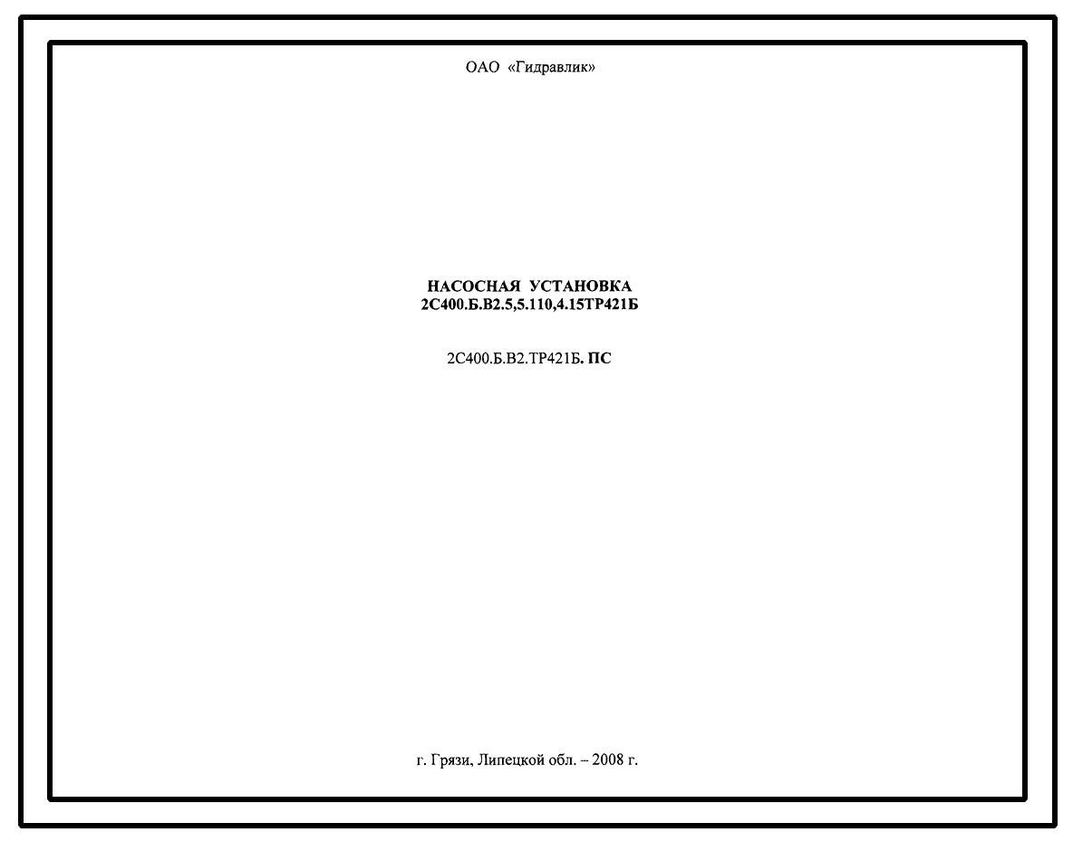 Шифр 2С400.Б.В2.5,5.110.4.15.ТР421Б Насосная установка 2С400.Б.В2.5,5.110.4.15.ТР421Б