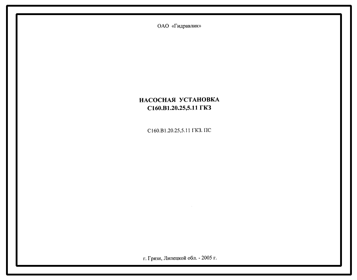 Шифр С160.В1.20.25,5.11ГК3 Насосная установка С160.В1.20.25,5.11ГК3