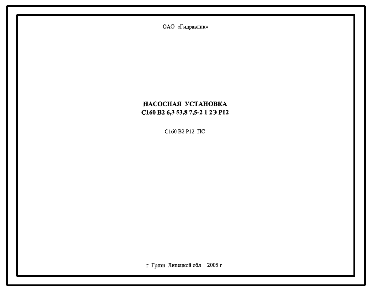 Шифр С160.В2.Р12.ПС Насосная установка С160.В2.6,3.53,8.7,5-2.1.2Э.Р12