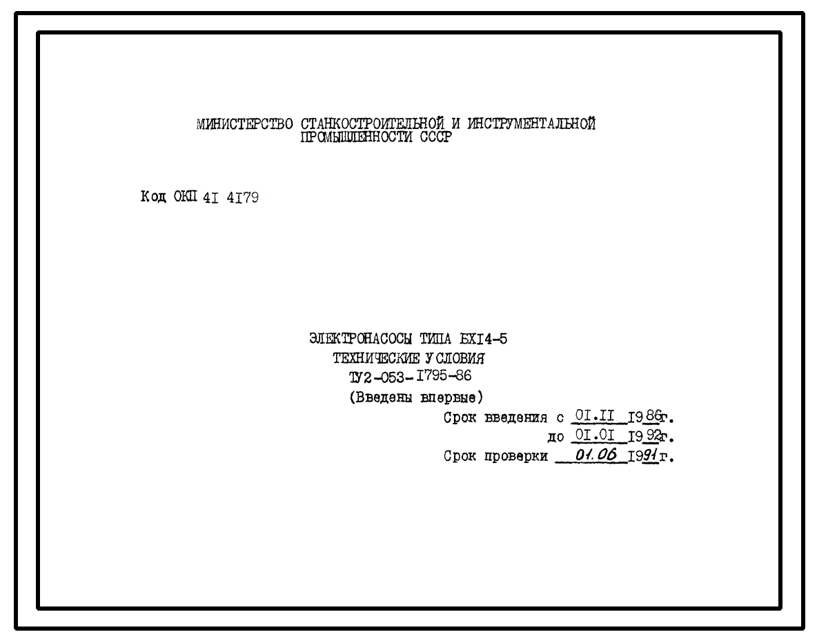Шифр ТУ2-053-1795-86 Электронасосы типа БХ14-5