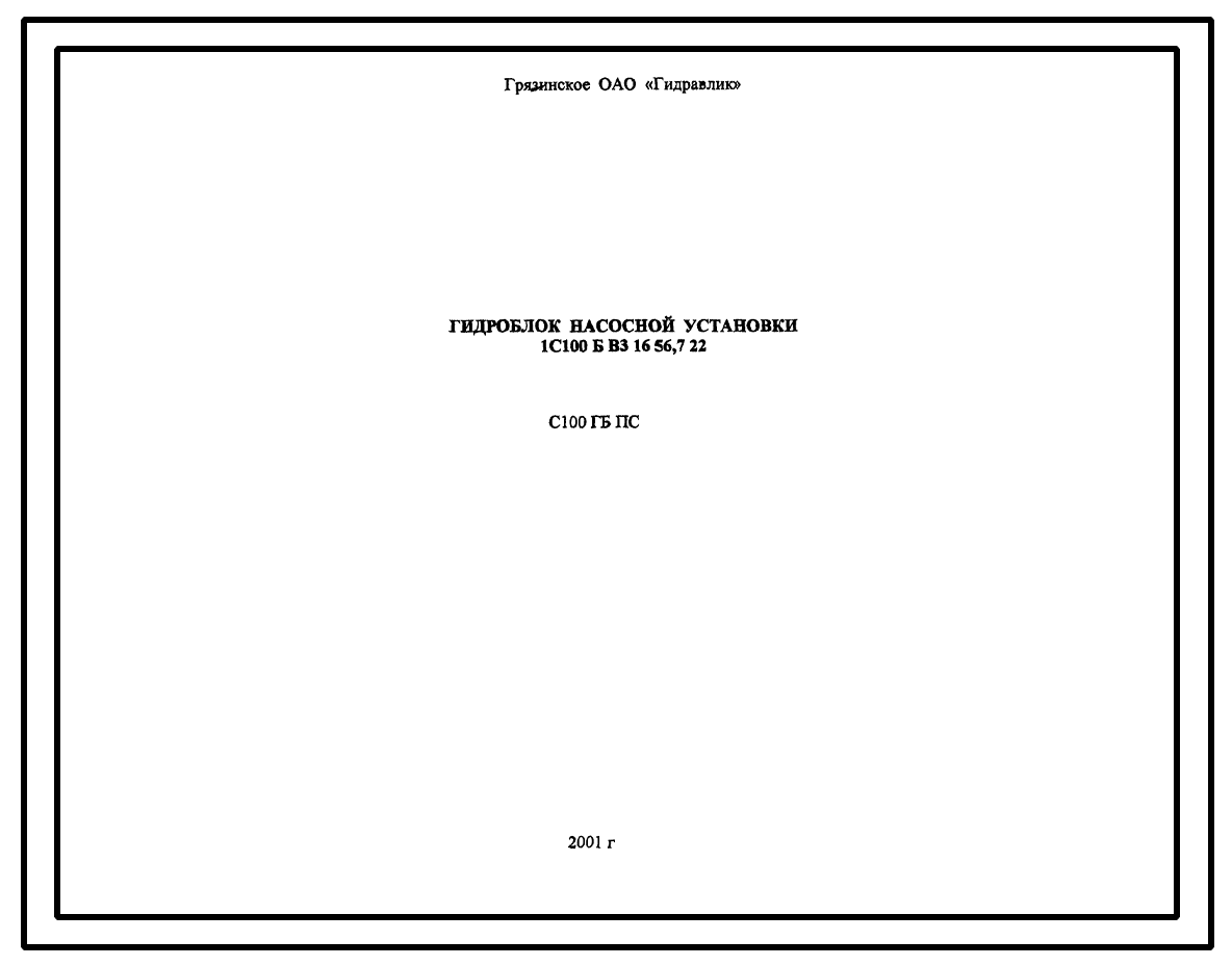 Шифр С100ГБ.ПС Гидроблок насосной установки С100Б.В3.16.56,7.22