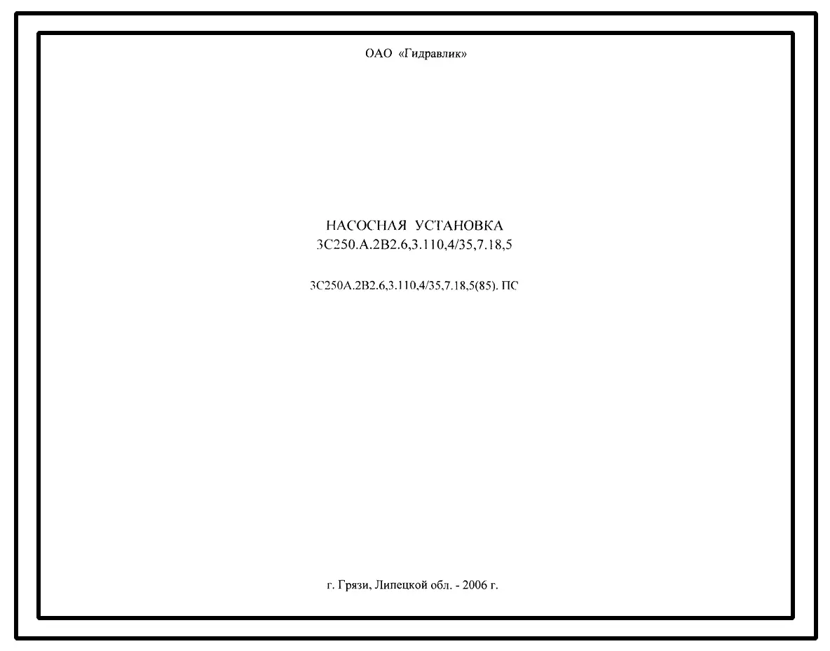 Шифр 3С250А.2В2.6,3.110,4/35,7.18,5(85).ПС Насосная установка 3С250А.2В2.6,3.110,4/35,7.18,5